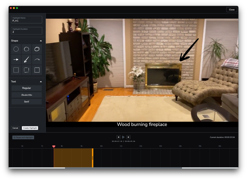 Make sure everyone sees the best features of your listing. Our easy Pause & Highlight feature lets you pick a key spot to pause the video and drop an arrow or special note about a special room or feature.